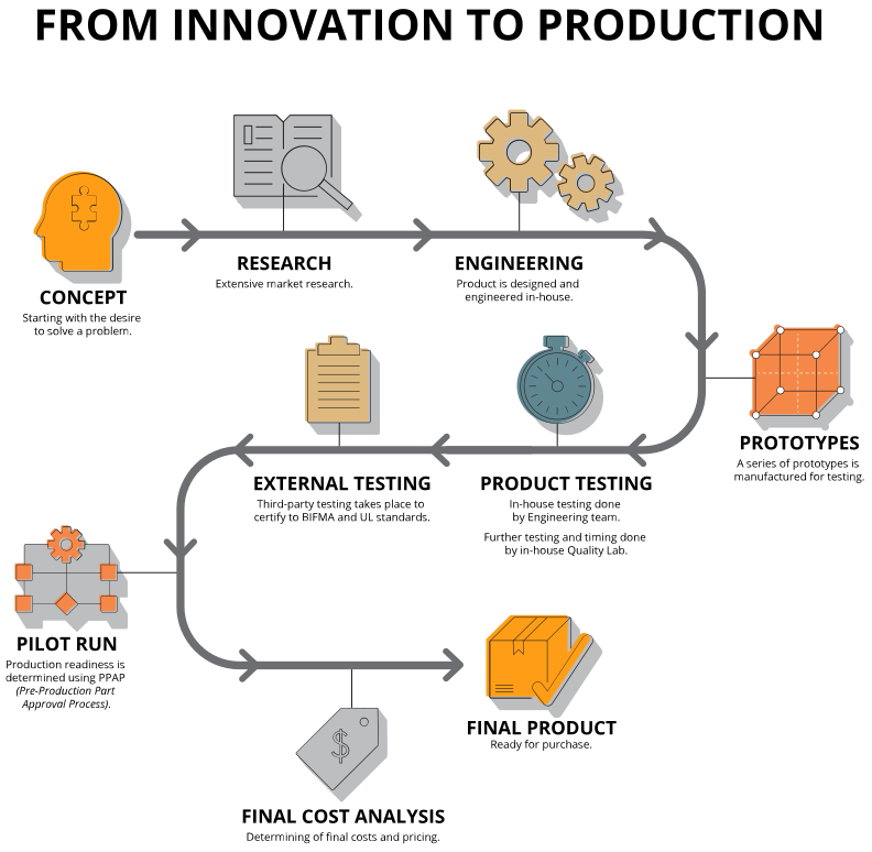 At OMT-Veyhl, we’ve reduced creating custom office furniture to a science— literally. We’re able to compress what takes most firms months—going from napkin sketch to prototype—into just eight days.